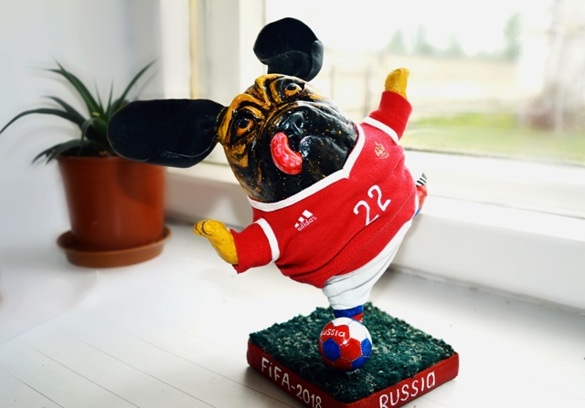 Так осужденная Гаврилова Мария, вдохновленная проходящим в России чемпионатом мира по футболу FIFA 2018, создала собаку- футболиста в официальной форме сборной России в технике папье-маше. Марию вдохновил не только легендарный футболист под №22 – Константин Дзюба, но так же и нынешний год – год собаки, именно поэтому в творчестве этой молодой художницы - собака, выступает в роли лучшего бомбардира нашей сборной.